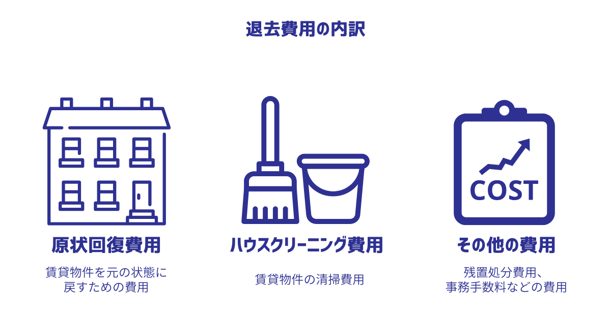 賃貸の退去費用の内訳は、主に以下の3つです。